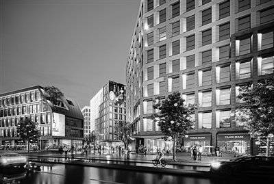 同时,设计采用中式坡屋顶及地块三角形的几何元素,建筑中融入三角元素,打造区域“金三角”的IP概念,并在西北角道路交叉处营造了一个标志性街角的城市空间,提升整个区域的品质。