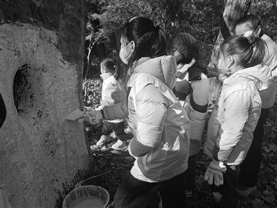 参观完故居,我们迎来了一项特别的任务——给树木刷白。大家拿着刷子,认真地为故居边上的树木穿上“防护衣”。这不仅是为了杀死虫卵幼虫和蛹,减少来年病虫害,更是我们对大自然的一份关爱。