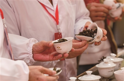 12月26日,福建武夷山市第六届“1938·正岩”杯茶王赛落下帷幕。此次茶王赛从近4000个送审茶样中决出了大红袍、水仙、肉桂、陈茶四大品类的新一届茶王。这是评审专家在茶王赛现场比对茶样叶底。