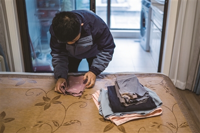 去家访的这天是周三,屋子被姑姑收拾得很干净,王艺涵进门后就去阳台上把晾干的衣服收下来,一件件叠整齐,码放在客厅的沙发上,方便拿取。之前,王艺涵因为个人卫生不好,多次被餐厅扣钱,还写了检讨书。机构的杨宇老师会打电话督促他每天洗澡,勤换衣物,还有不要玩手机到很晚。