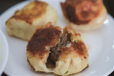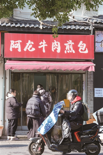阿龙师傅的店里,牛肉煎包用发面,面皮软和,能照顾到牙口不是很好的老年人;牛肉煎饺用死面,面皮紧实有嚼劲,在油锅里煎烤后可以形成一层酥脆的“壳”,更受年轻人的喜欢。