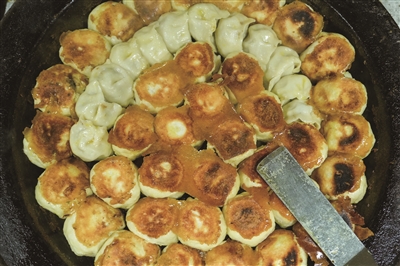 “一个牛肉煎包65克,一个牛肉煎饺55克,都是3块钱一个。生意好的时候一天能卖两千多个,再多就来不及了。”孙师傅说,现在店里只有一口大铁锅,一次虽然能装50多个包子和饺子,但是做一锅起码要十五分钟。“我们的煎包是两面煎的,把包子翻两次面,差不多十五分钟就可以出炉了。”