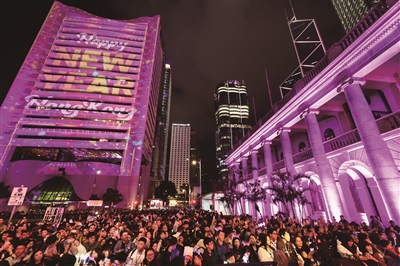 1月1日,人们在香港中环参加由香港旅发局举行的跨年倒数活动。新华社发