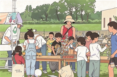 高频次、深层次的互动,将松散的商户与访客编织成紧密的情感共同体。来到这里的人,消费不再是唯一目的,更多是为了参与一种向往的生活。如今,暖村的生态还在不断延伸,废弃的农贸市场变身社区商业中心;保留着标志性蓝白马赛克外墙的长命小学,吸引了一批数字创新青年扎根,开启共居共创的生活。“我们二期叫‘良渚生长力聚落’,就像哆啦A梦的任意门,能容纳生活的万千想象。良渚是包容的,希望每个人都能在这里扎根,找到自己认可的生活方式。”赵丹说。 离开暖村时,农夫市集的热闹仍在继续:有人与摊主畅聊书籍,孩子在农田里体验割稻、脱谷,尽情亲近自然。这里不像刻意招商的商业集合体,更像一个基于共同价值观形成的“生活共同体”。店主们来自五湖四海,有着大厂员工、广告策划、律师、作家等不同职业背景,但他们都未将生意作为首要目的,而是把它看作融入乡村、实践理想生活后自然生长的结果。