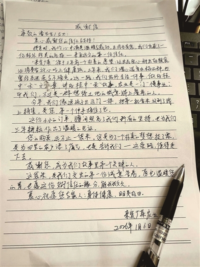 活动现场,来宾广荣农业发展有限公司(以下简称“来宾广荣农业”)的负责人莫丽荣将一封手写信与两袋真空包装的“桂中香米”放入快递箱。这是寄给首位在“网上农博”平台下单的杭州市民潘先生的特殊包裹。“提笔时心中满是温暖与感动!”莫丽荣在接受采访时难掩激动,她表示这份订单对团队而言意义非凡:“它不仅是对我们三年来选育水稻品种的肯定,更给田里的农户们增添了实实在在的底气。”信中,她特别写道:“您购买的远不止一袋米,是为朴素梦想投票,告诉我们这条路值得走下去。”作为专注“做好桂中‘禾’文章,讲好桂中‘米’故事”的农业团队,他们期待这份始于信任的缘分能如桂中稻米般,在时光的滋养下愈发醇厚绵长。
