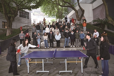 1月16日,由重庆市人民对外友协、史迪威研究中心主办的“史迪威中美青年桥”主题活动在重庆史迪威博物馆举行。19名来自美国依隆大学的师生与来自四川大学、四川外国语大学、重庆南开中学的师生一同参观了史迪威将军旧居和展现二战期间中美合作的展览。随后,中美青年展开了一场乒乓球友谊赛。这是中美青年在博物馆户外平台上进行乒乓球友谊赛。