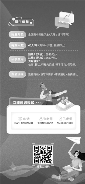 商报讯 (记者 张玎) 高二、高三的学霸们, 你是否在课桌前,想象过自己漫步在浙大的启真湖畔、复旦的光华楼前、上交的思源湖边或走进中科大的“未来中心”?是否对“强基计划”充满好奇,想站在科技转化的窗口,看知识如何改变世界?通往梦想的“深度体验券”已准备好了!这个寒假,杭州日报携手浙大科技园,联合浙江大学、复旦大学、上海交通大学、中国科学技术大学四所高校招生办,共同打造的2026年“深度研学+科创融合冬令营”将正式开始招生。