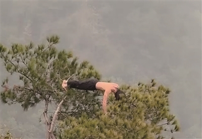 1月14日,重庆南山虚灵峰上,一名男子赤膊在峭壁的树上做俯卧撑。只见这名男子手抓着树枝,脚踩着另一处树枝,做俯卧撑的过程中树枝上下颤动。 同行者李先生说,男子是经常带大家爬山的群主,这可能是他的日常运动,但是不希望大家模仿,因为一般人做这个动作很危险。 南山虚灵峰位于重庆南岸区南山风景区,是南山十二峰中最险峻的山峰之一,以陡峭岩壁和能看城市全景著称,经常有徒步爱好者攀爬挑战。 据新京报微信公众号