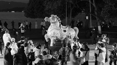 《马上钱潮》一亮相就成了市民游客的打卡点。 商报记者 严嘉俊 摄