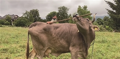 1月19日,奥地利一头13岁宠物母牛用工具灵活挠痒痒的视频曝光后走红。