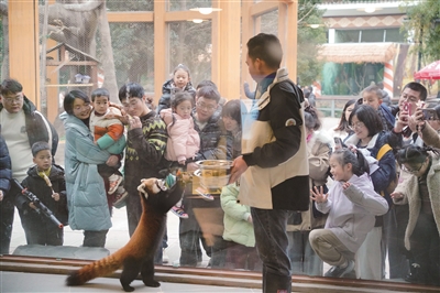 快看,“人气王”小熊猫! 近日,临平公园动物园全新开放,门票8元/人/次(1.2米以下免费)。升级后的动物园,集结了小熊猫、小浣熊、水豚、土拨鼠等19种共百余只萌兽。 园内的“人气王”是两只超萌的小熊猫,一只近2岁,另一只2岁。两只小熊猫活泼可爱,胖乎乎、毛茸茸,平时特爱吃甜食尤其是苹果。据悉,这个双休日一天有5000人左右入园,很多人是冲着小熊猫前来打卡的。图为昨天饲养员在临平公园动物园给小熊猫喂食。商报记者 项凯 摄影报道