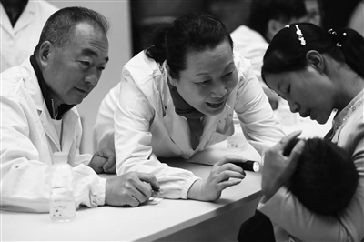 韩凯医生及其团队在云南曲靖给唇腭裂患者义诊。