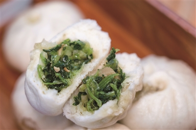 “比较受欢迎的是老面豆沙包和透汁鲜肉小包子。”刘心雨说。在一笼笼白白胖胖的包子里,豆沙包很好认,圆滚滚的,像个白馒头。