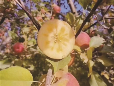 挂在枝头的阿克苏苹果,已长出金色的冰糖心。