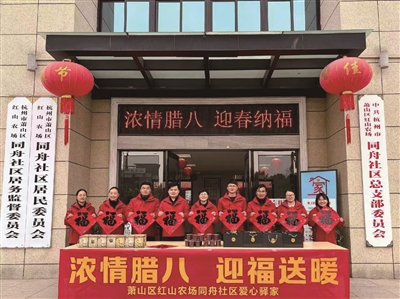 腊八节当天,萧山区红山农场同舟社区党总支联合社区工青妇组织开展了“浓情腊八 迎春纳福”活动。