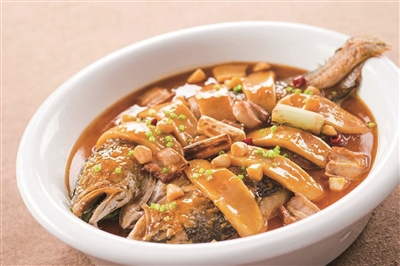 杭州人的年夜饭,少不了藏着美好寓意的硬菜,名人名家的家烧野化大黄鱼也是不少食客年夜饭的首选。“黄鱼寓意‘年年有余’,年糕象征‘步步高升’,在我们餐厅是非常受欢迎的一道菜。”餐厅负责人说。两斤多重的大黄鱼经煎、煨等多道工序慢烹,鱼皮酥香、鱼肉厚实细嫩,吸饱鲜醇汤汁的年糕软糯入味,一口下去,满是杭州人记忆里的年味儿。