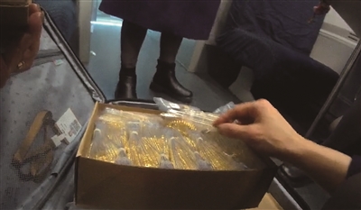 当日7点04分,D914次列车抵达上海站。旅客下车后,列车长吴佳雯像往常一样检查车厢。走到6号车厢时,她发现一个铺位下面靠墙的位置有个黑色行李箱,箱子很重。她叫来乘务员,两人一起把箱子抬到了餐车。在乘警的陪同下,她打开视频记录仪进行开箱检查,只见里面整整齐齐码着十来包黄金饰品,每包约1000克,总共12公斤,按当时的金饰价格,价值近2000万元。