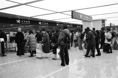 为保障春运期间进出境旅客安心安全出行,杭州萧山机场海关一方面加强政策普法宣传,在现场设置“E关通”智能服务站,旅客可自助了解最新的进出境行李物品监管政策、离境退税预约服务等信息,另一方面,加强与机场、航司的协同联动,提前了解春运期间航线、航班增量情况,科学部署客流抵离高峰保障方案,同时就航班延误、备降等进一步完善了联动应急处置预案。“此外,我们通过航前风险研判、托运行李先期机检、通关现场应用AI智能眼镜等手段,确保春运期间监管不缺位,通关不降速,服务不断档。”林瀑介绍。