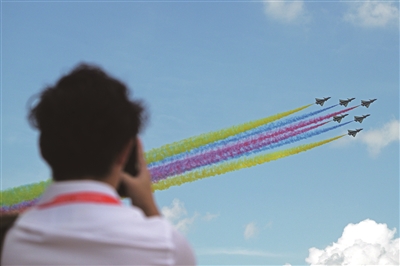 中国空军八一飞行表演队 亮相第十届新加坡航展 2月3日,中国空军八一飞行表演队在第十届新加坡航展首日进行飞行表演。为期6天的第十届新加坡航展3日开幕。应邀参展的中国空军八一飞行表演队在开幕式上进行飞行表演,6架歼-10表演机在海天之间上演了一场“空中芭蕾”。