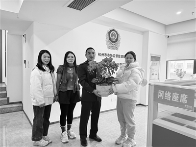 商报记者走进基层一线,为杭州市市场监管局12315接线大厅工作人员送花