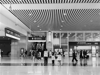 车站里来来往往的人真多,有的在存放行李,有的小跑着去坐电梯,有的在站口不知所措地走来走去,还有一些旅客,他们不知道在G层出来不用刷身份证,依旧像以前一样刷身份证通行,反而浪费了时间,减慢了出站的速度。