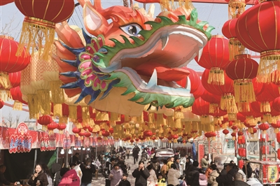 2月12日,江苏省连云港市赣榆区金山镇美小村年集一片红火(无人机照片)。春节临近,各地张灯结彩,年味愈浓。