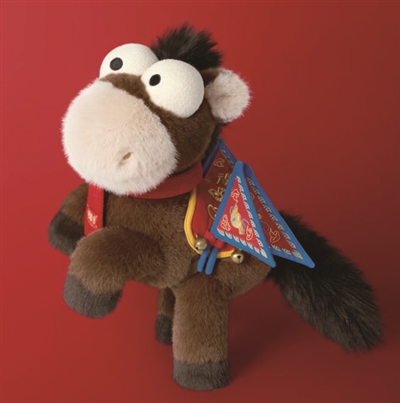 保留吉祥寓意、打破传统套路,是这款产品脱颖而出的关键。沈泽介绍,“一马当先”挂偶并未直接还原或照搬传统马的形象,设计团队刻意弱化了马的典型特征,转而强化其辨识度记忆点。造型上,延续了龙年“龙头老大”玩偶“大头小身、泡泡眼、四肢纤细”的标志性设计,同时摒弃了写实骏马的飘逸感,塑造出更具毛绒玩具质感的憨厚模样,既可爱讨喜,又传递出“一马当先”的美好期许。