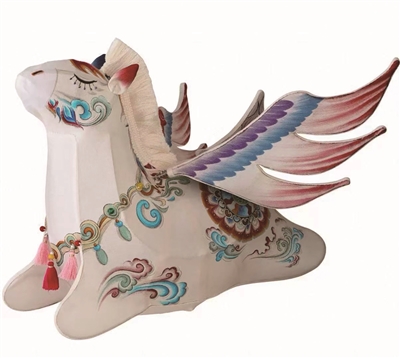“‘文创+’的融合模式,让产品更具文化韵味与市场竞争力。”王丹青介绍,其中“敦煌翼马”花灯是“王的手创”与敦煌艺术研究所联合打造的精品,设计灵感源自莫高窟壁画中的各类飞天翼马,设计团队通过匠心工艺,将岩壁上的千年翼马“请”下壁画、融入花灯。