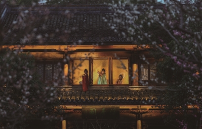 这是2月23日在超山风景名胜区大明堂拍摄的夜间沉浸式剧本游。