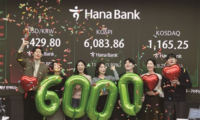 当日,韩国综合股价指数(KOSPI)突破6000点,以6083.86点收官。