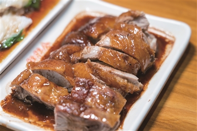 最后上桌的是20元的香脆烧鸭,分量和味道秒杀了不少餐厅里的烧鸭。烧鸭的皮烤得金黄,油光锃亮,油脂在嘴里爆开,却一点都不腻。鸭肉鲜嫩多汁,蘸上店里的秘制酱汁,不管是直接吃还是配煲仔饭一起吃,都能让味道再上一个层次。