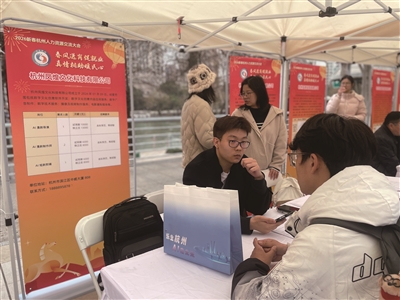 政策咨询区同样热闹,人社、工会、残联等多部门联合为不同群体提供政策解读与帮助。“刚了解到交满半年社保能申领住房补贴,这些实在的政策是我选择来杭的重要原因!”来自金华的陈同学说。