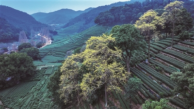 这几天,在杭州龙井村、龙坞茶镇、梅家坞等西湖龙井核心产区,檫树开花,春茶将至。昨天,在梅家坞的茶山上,西湖龙井已经悄悄萌动,长出第一茬嫩芽,色泽翠绿鲜活,而一棵棵高大的檫树迎风盛放,点点“碎金”缀满枝头,为春日的茶园增添一份绚丽生机。据悉,2026浙江新茶将于近期陆续上市,西湖龙井预计三月中旬开采上市。商报记者 项凯 摄影报道