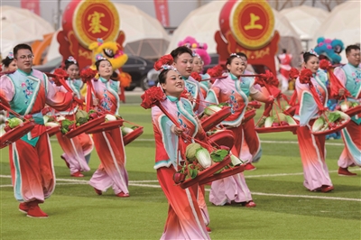 3月1日,2026年“塞上非遗韵·红火中国年”宁夏社火展赛决赛在银川市览山公园启幕,来自全区的20支社火队伍同台竞技,为市民献上一场精彩的社火大展演。这是参赛社火队的演员在银川市览山公园比赛。