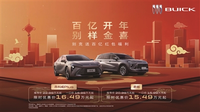 2月26日,上汽通用汽车别克宣布开启“百亿大红包”开年福利,以实打实的诚意优惠、真诚透明的购车价格让利消费者:即日起至2026年3月31日,购买昂科威Plus、君越可享受1000元抵6000元定金膨胀。定金膨胀后,昂科威Plus直降5000元,终端限时优惠价16.49万元起;君越直降5000元,终端限时优惠价15.49万元起。活动期间,用户到店更有惊喜好礼相送,欢迎进店品鉴。