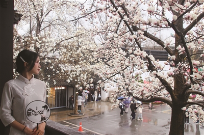 3月1日,游客在玉兰绽放的江苏省苏州市狮子林赏花游玩。春暖花开,神州各地春意融融。人们纷纷来到户外踏青赏花,乐享春光。