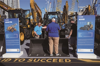 3月3日,拉斯维加斯工程机械展开幕,这是北美规模最大的工程机械行业展会,集中展示全球工程机械领域的最新设备和创新技术成果。中国工程机械领军企业以强大阵容亮相展会。这是人们在该展会上参观徐工集团的设备。