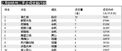 商报讯(记者 周坚洪)日前,杭州公布了2月份的二手房成绩单,受到春节长假影响,成交量环比同比均出现下滑。