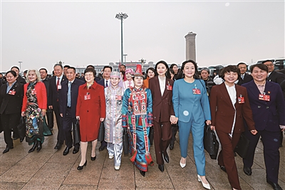 她们以奋斗为笔,为时代作答 3月5日,第十四届全国人民代表大会第四次会议在北京人民大会堂开幕。这是全国人大代表走向会场。 出席十四届全国人大四次会议和全国政协十四届四次会议的女代表、女委员们,带着人民的嘱托,将时代的命题写入履职答卷,用务实的建言在庄严会场激荡出回响。 柔肩担重任,巾帼绽芳华。从工厂车间到边疆学校,从基层讲台到民族村寨……她们的故事各不相同,却指向同一个方向——中国女性用奋斗,为时代作答。新华社发