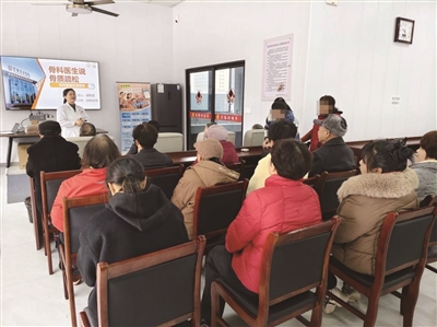上午9时,活动正式启动,老年居民们在社区工作者与志愿者的引导下有序参与。针对居民普遍关心的骨骼健康问题,富阳东吴医院胡莉君副院长带来骨质疏松专题讲座。胡院长结合真实案例,用通俗语言从病因、预防、日常保健到药物治疗进行全面讲解,现场居民认真聆听、踊跃提问,纷纷用手机记录重点内容。