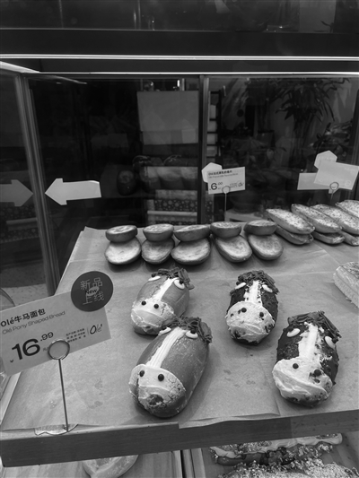 Ole超市货架上四个造型各异的“牛马面包”
