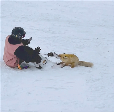 3月10日,网友发布的视频显示,在新疆阿勒泰吉克普林国际滑雪度假区,一只狐狸咬住滑雪游客的裤子,游客滑倒、起身后滑走甩开了狐狸,狐狸转而去咬旁边一名女游客的鞋子和滑雪板,旁边有人在喊“赶紧滑走”,女游客被吓得尖叫不敢动。