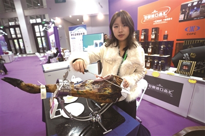 农都进口品汇的试吃区围满了人。负责人豆梦杰正在切火腿片供市民品尝:“我们的阿图罗·桑切斯火腿是西班牙的顶级品牌,风味非常独特。”她一边熟练地切着薄如蝉翼的火腿片,一边热情地向围观的市民介绍产品特色。