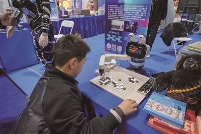 杭州小朋友与元萝卜AI智能下棋机器人对弈