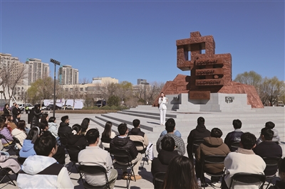 3月18日,南开大学“爱国三问”碑及文化广场正式落成,一堂以“历史之问、时代之问、未来之问”为主题的“大思政课”同步开讲。1935年9月17日,南开大学时任校长张伯苓在新学年始业式上提出了著名的“爱国三问”——“你是中国人吗?你爱中国吗?你愿意中国好吗?”这是南开大学马克思主义学院副院长马梦菲在主持思政课。