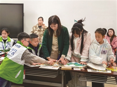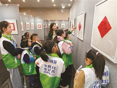 长青小学美术教师陈晓园带领小记者参观藏书票展