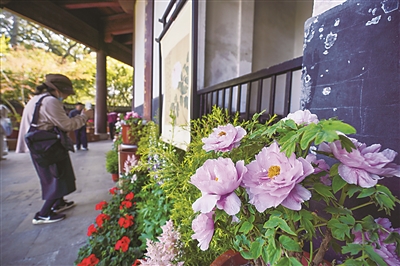 本届花展以“天香人和”为主题,设有地栽展区与盆栽展区,汇聚地栽牡丹品种近80个、盆栽品种近130个,今年还有“绣桃花”“花大臣”“擎天粉”等新品亮相。此外,花展还精心打造了多处特色打卡点,为春日赏花的游客增添仪式感和体验感。花展将持续至4月13日。图为昨天游客在花展上赏花拍照。