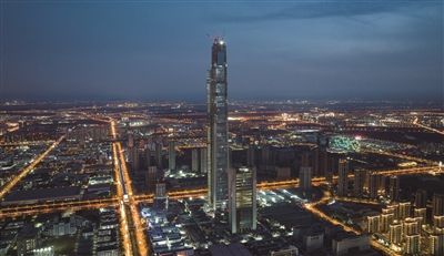 3月28日,伴随重约7.6吨的菱形钢结构部件升到约596米高的楼顶,天津“117项目”“钻石顶”的首个钢结构部件吊装成功,标志着该项目进入塔冠钢结构全面施工阶段。 “117项目”坐落于天津滨海高新区,自2025年4月复工建设以来,项目全面建设有序推进,区域配套同步实施,盘活利用工作取得重要阶段性进展。这是“117项目”附近一景(无人机照片)。