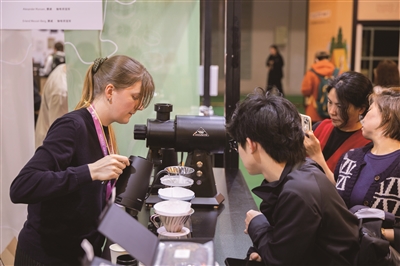 3月30日,观众在一家瑞典咖啡展位体验。当日至4月2日,第三十四届上海国际酒店及餐饮业博览会在国家会展中心(上海)举行,品类覆盖餐饮设备、咖啡茶饮、冰淇淋及乳制品等。