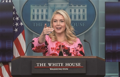 3月30日,在美国首都华盛顿白宫,白宫新闻秘书莱维特出席记者会。美国白宫新闻秘书莱维特当日在记者会上说,美总统特朗普有意呼吁阿拉伯国家承担美对伊朗军事行动的费用,并称这是特朗普自己的一个想法。